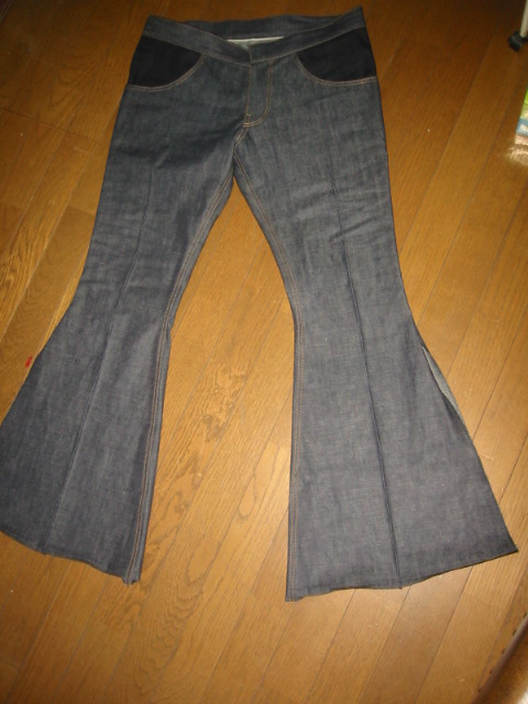 あとは、ますますフレアーにする、隠しフレアー縫って、ベルトループ付けて、ボタン付けて完成!!